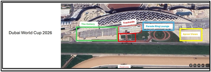 ※2025年4月ドバイワールドカップ観戦ツアー時にご案内をしていた観戦席 ”Trackside”は、関係者エリアに変更となりました。